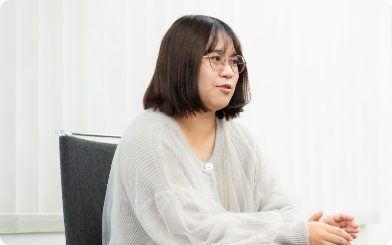 - 入社当時の私には専門知識もなく不安しかありませんでしたが、丁寧に根気強く指導してくださった先輩方のおかげで知識も仕事の幅も広がりました。ただ一つだけ、「文章が好き」という変わらない想いが、自分の成長には絶対必要だったと感じています。心から好きなことを大切にできる。だからこそ、今の私があると感じています。
