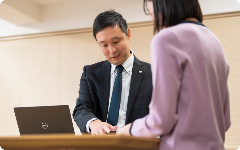 管理職としての業務に加え、当社オリジナルシステム「WizLabo」を使用した各種提出書類の作成や納期管理、作業ルールの策定を行っています。お客様とやりとりをしながら各種提出書類をつくっていきますが、その中での私たちの役割は、お客様に入力していただいた部分を専門的な目で見て補完したり、専門知識がないと入力できない部分を代わりに作成することです。また、私たち制作部が抱えている課題や営業部がお客様目線で見た時の問題を擦り合わせて、お客様と当社にとって、より効率的で合理的な作業を追求していくのも重要な仕事。その上で新しい作業ルールの構築やソフトの改修の提案なども行っています。