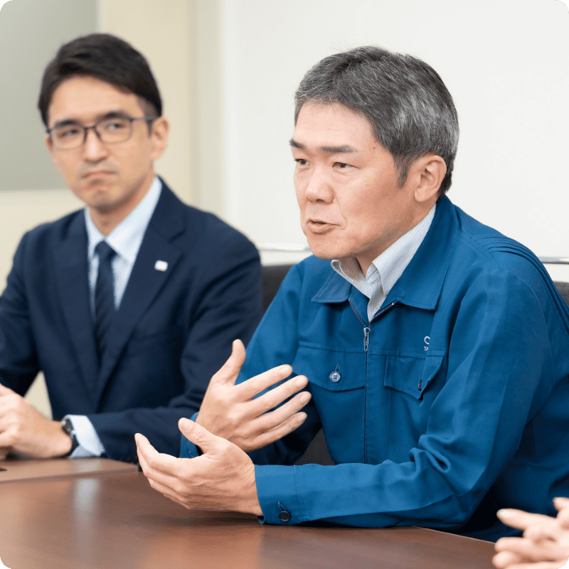 ⾃分のキャリアアップもさることながら、⽣産管理部と⾃社⼯場との⼈材交流を通して、次の管理職を育てていくことが⽬標です。なかなか難しいですが、⼀歩⼀歩着実に進めていきたいですね。